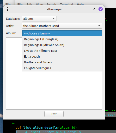 Ik had hem oorspronkelijk gemaakt als frontend voor de Banshee database om daar even snel in te kunnen kijken; maar al snel heb ik het mogelijk gemaakt om ook de soortgelijke inhoud van de Albums database er mee te kunnen bekijken. Nadat ik overgegaan was naar Clementine en nog later naar Strawberry heb ik die ook toegevoegd; en tenslotte heb ik het bekijken van de data in mijn oude Winamp CDDB "database" ook mogelijk gemaakt.